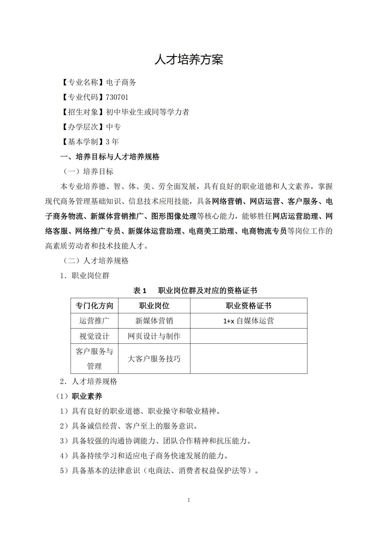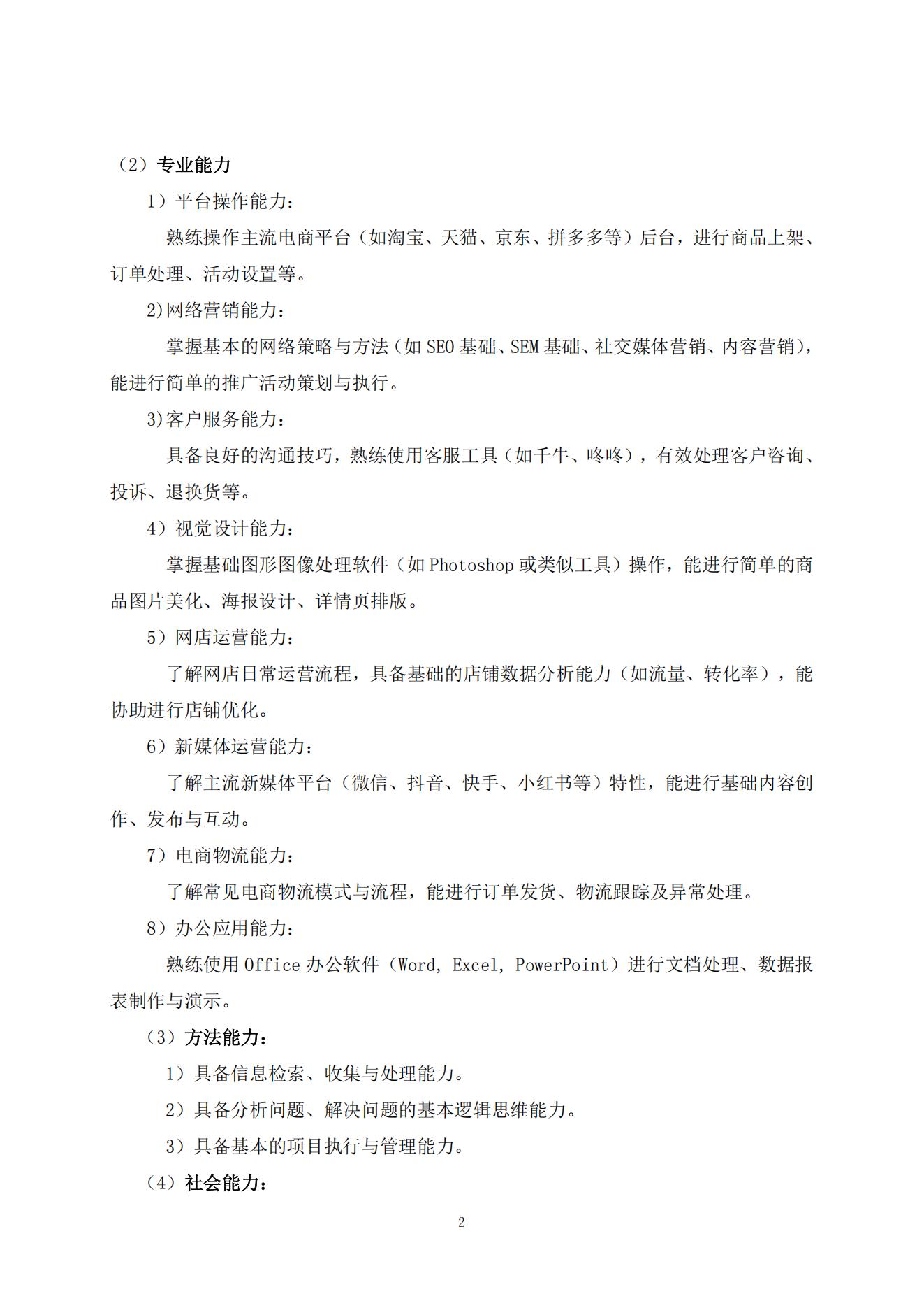 电子商务专业人才培养方案